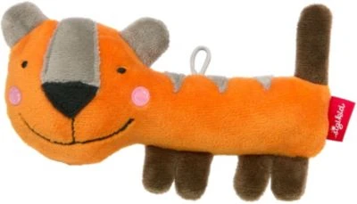 Erlebnis-Kuschelkumpel für die Kleinsten. Der niedliche Tiger lädt zum Entdecken, Greifen und Spielen ein und ist ein bezaubernder Begleiter durch den aufregenden Baby-Alltag. Der Greifling hat eine eingebaute Rassel und eine fröhliche Quietschfunktion, die die ersten Greifversuche belohnen. Das freundliche Gesicht ist gestickt und mit der Schlaufe am Kopf kann der Quietsche-Freund am Bettchen oder am Kinderwagen befestigt werden.