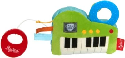 Ein Keyboard für kleine Musikfans! Dieses Babyspielzeug aus der Serie PLAY & COOL lässt Babys Freude haben. Die Serie enthält coole Babyspielsachen für Jungs und Mädchen – fernab des üblichen Rosa-Hellblau-Schemas. Witzige Themen wie Musikinstrumente, Werkzeuge und Elektronik werden stylisch umgesetzt und durch ein authentisches Verpackungsdesign unterstützt. Die Kombination aus bunten, schmuseweichen Microfaserstoffen verleiht der lustigen Spieluhr in Form eines kleinen Keyboards den unverwechselbaren sigikid-Touch. Zieht das Baby an dem roten Ring ertönt die Melodie „Für Elise“ von Ludwig van Beethoven. Die weichen Materialien bieten eine angenehme Haptik und eignen sich auch zum Schmusen. Der fest vernähte Beißring und die bunten Bänder sorgen für Abwechslung und animieren das Baby zum Greifen und Nuckeln. Der Beißring kann auch zur Linderung beim Zahnen beitragen. Das 14 cm große Keyboard ist ein wirklich außergewöhnliches und vielseitiges Babyspielzeug, das aufgrund seiner sanften Melodie selbstverständlich auch wie die klassischen sigikid Spieluhren für ein beruhigendes Einschlafritual benutzt werden kann. Das Plüsch-Instrument ist bereits für Babys ab Geburt geeignet und bietet sich somit auch als ausgefallenes Geschenk zur Geburt an. Alle Werkstoffe sind hochwertig verarbeitet und halten auch häufiger Wäsche bei 30° C im Schonwaschgang stand. Das Spielwerk nimmt man vor dem Waschen heraus – einfach den Sicherheitsreißverschluss mit einer Büroklammer (siehe Anleitung) öffnen. Das Spielwerk kann natürlich auch entnommen werden, um es gegen ein anderes auszutauschen und somit die Melodie der Spieluhr zu wechseln. Für Fragen zu speziellen Melodie-Wünschen wenden Sie sich gerne an den Hersteller.